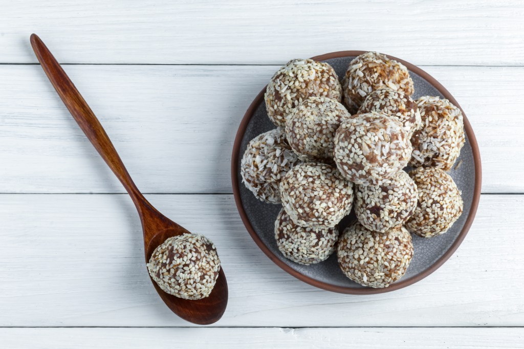 - Place the energy bites on a plate or baking sheet lined with parchment paper.