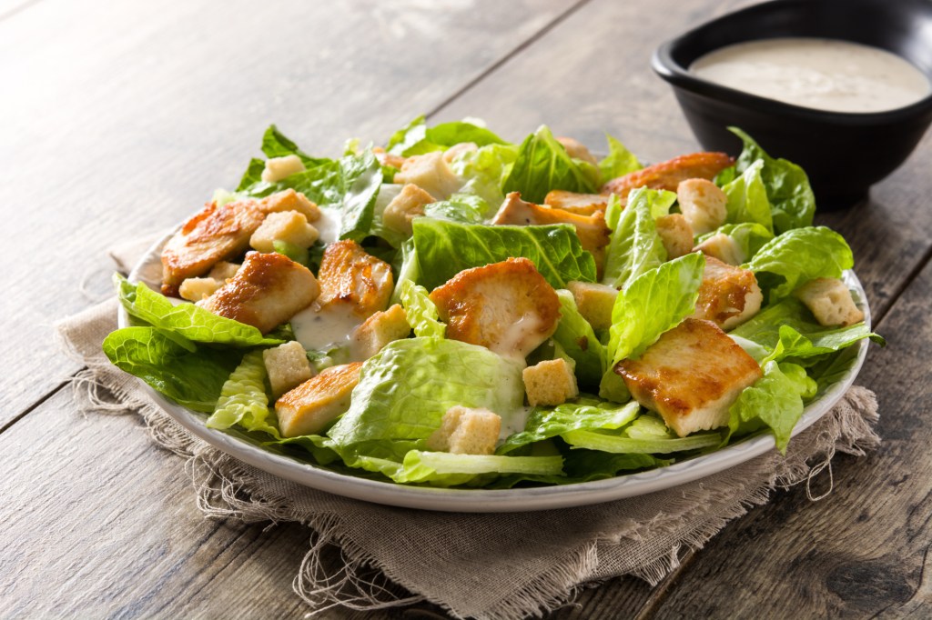 A crisp, citrusy Chardonnay or Verdejo complements the tangy dressing and Parmesan. For a sparkling option, try Cava.