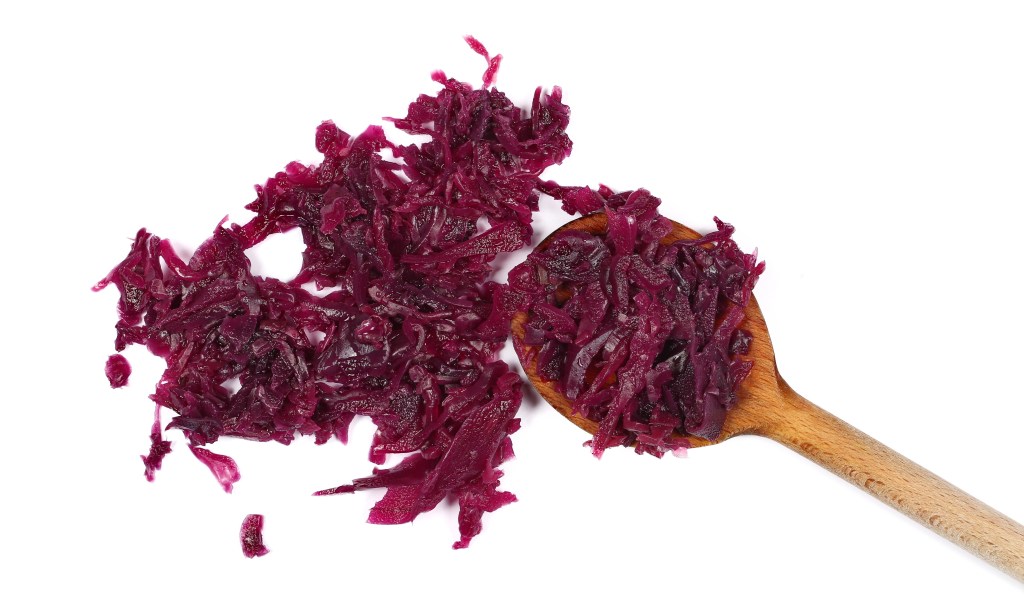 Red cabbage changes color with acidity—more vinegar makes it redder; less acid can shift it toward purple/blue.